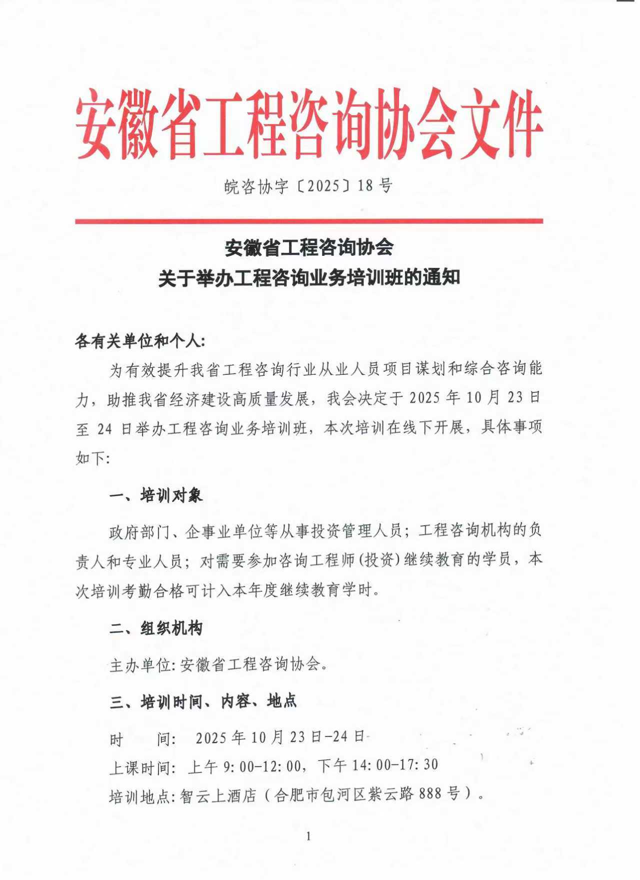 安徽省工程咨询协会 关于举办工程咨询业务培训班的通知